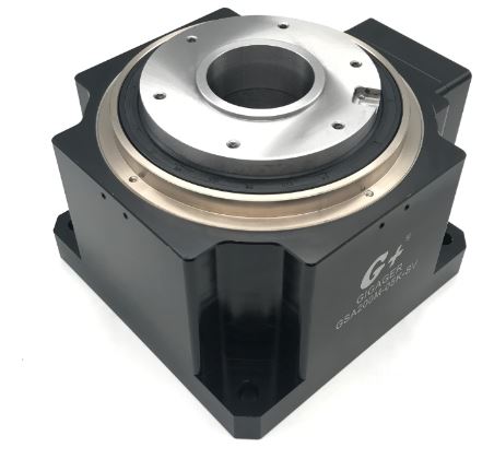 Il s'agit de la table rotative de précision à angle droit modèle GSA200-05K-SV avec un rapport de démultiplication de 1: 5, taille 200 mm pour servo-moteur. La table rotative à angle droit de précision rend le câblage et la tuyauterie plus pratiques et simples, et les avantages de cette fonction sont particulièrement importants dans les environnements de câblage et de tuyauterie complexes. Avec son corps conçu à haute résistance, il peut supporter une charge axiale plus importante que la table rotative creuse jusqu’à 5000N.